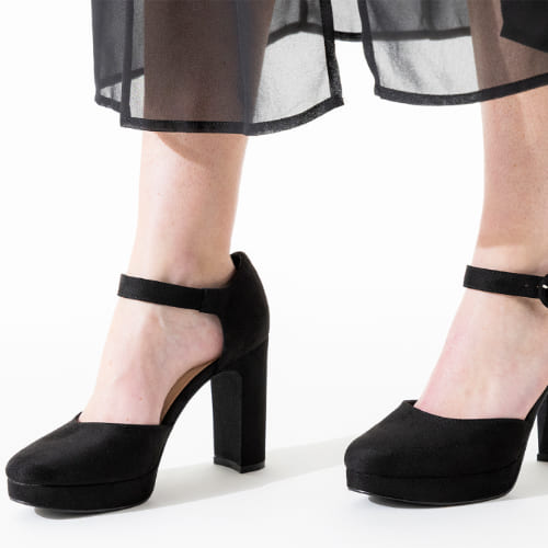 These faux‑suede chunky‑heel pumps with an ankle strap elevate any outfit while offering both support and style.
